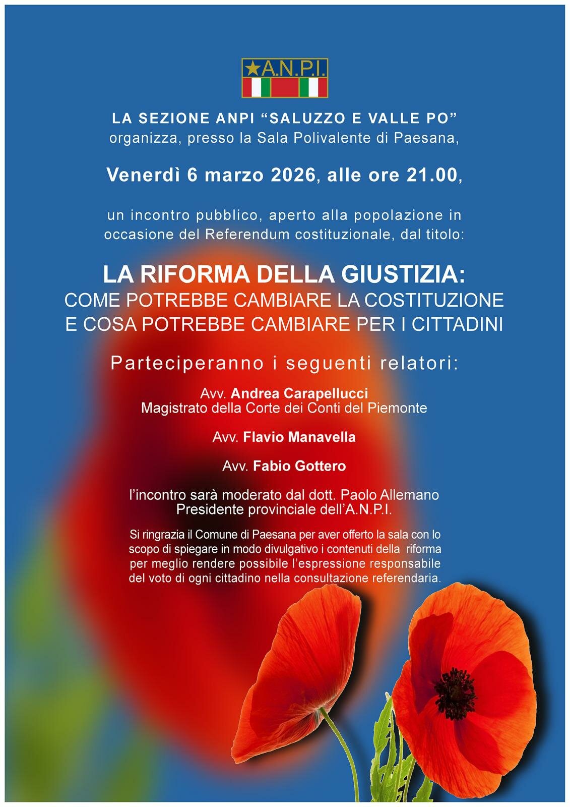 VENERDI 6 MARZO ORE 21 A PAESANA SALONE POLIVALENTE