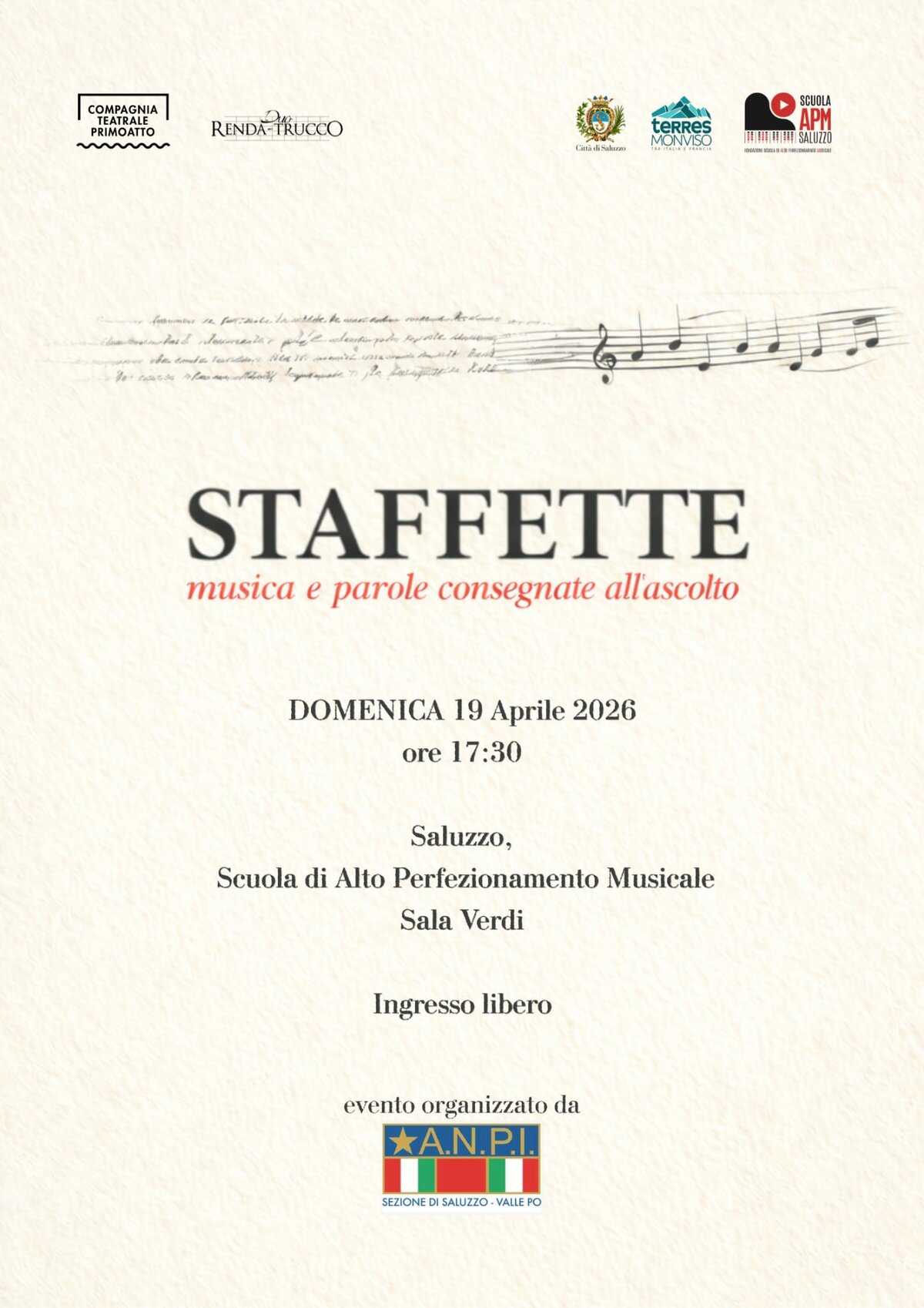 Questo concerto–spettacolo nasce con l’obiettivo di tenere desta la coscienza, riascoltando da voci autorevoli e da protagonisti del tempo che fu un richiamo chiaro alle responsabilità individuali e collettive nel quotidiano. Non come esercizio di memoria, ma come atto di ascolto consapevole. Il titolo è un gioco di parole che richiama il passaggio di consegne che i brani e i testi di questo spettacolo intendono compiere nei confronti di chi vive il presente. Allo stesso tempo, rimanda in modo immediato alle staffette partigiane: donne spesso giovanissime che, durante la Resistenza, portavano sul proprio corpo messaggi di speranza e libertà, assumendosi rischi enormi affinché quelle parole potessero arrivare a destinazione. Musica e parola si intrecciano in un percorso unitario che attraversa il Novecento europeo e italiano, mettendo in dialogo grandi compositori del secolo scorso con testi fondamentali della riflessione civile e della Resistenza. Un dialogo che non procede per illustrazione o commento, ma per risonanza: ciò che viene detto e ciò che viene suonato si rispondono, si amplificano, si consegnano reciprocamente all’ascolto. Le parole dei sopravvissuti, le lettere dei condannati a morte e il celebre discorso finale de Il grande dittatore di Charlie Chaplin non sono presentati come semplici documenti storici. Sono parole nate per essere ascoltate, parole che hanno attraversato il tempo perché destinate a qualcuno. In questo senso, arrivano fino a noi come urgenze che chiedono attenzione e responsabilità. La musica non svolge un ruolo di accompagnamento, ma partecipa attivamente al racconto. È una musica che nasce per lo più nello stesso secolo delle parole che ascoltiamo: un secolo segnato da dittature, guerre e persecuzioni, ma anche da una ostinata e tenace ricerca di libertà. I brani proposti diventano a loro volta staffette sonore, capaci di trasmettere tensioni, contraddizioni, slanci e speranze. Anche nelle composizioni a noi più vicine risuonano gli echi di un passato che non vogliamo dimenticare ma che si arricchiscono con un pensiero nuovo, armato di sola fiducia e consapevolezza Il programma alterna brani strumentali e momenti di parola secondo una drammaturgia pensata per mantenere alta la tensione emotiva e intellettuale dello spettatore, senza mai indulgere nella retorica. Non c’è una voce che spiega o guida dall’alto: ci sono parole e musiche che passano di mano in mano, affidate a chi ascolta. Testi di Primo Levi, Antonio Gramsci, Piero Calamandrei, Italo Calvino e altri si intrecciano con musiche di Azio Corghi, Franco Margola, Mario Castelnuovo-Tedesco e Gioacchino Rossini, componendo un percorso che non intende chiudere un discorso, ma aprirlo. Staffette è un invito all’ascolto e alla responsabilità. Perché una consegna esiste davvero solo se qualcuno la riceve