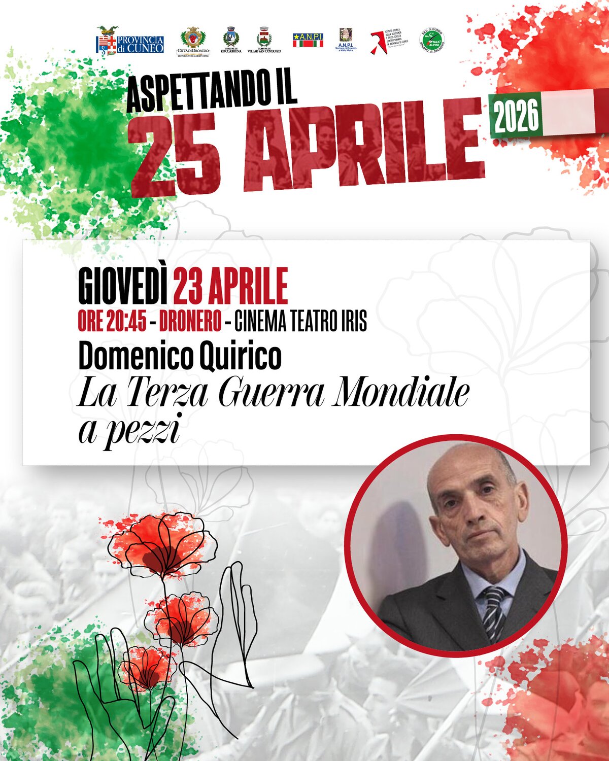ANPI Dronero Aspettando il 25 Aprile ANPI Dronero Appuntamento al Tetaro Iris di Dronero con Domenico Quirico. .