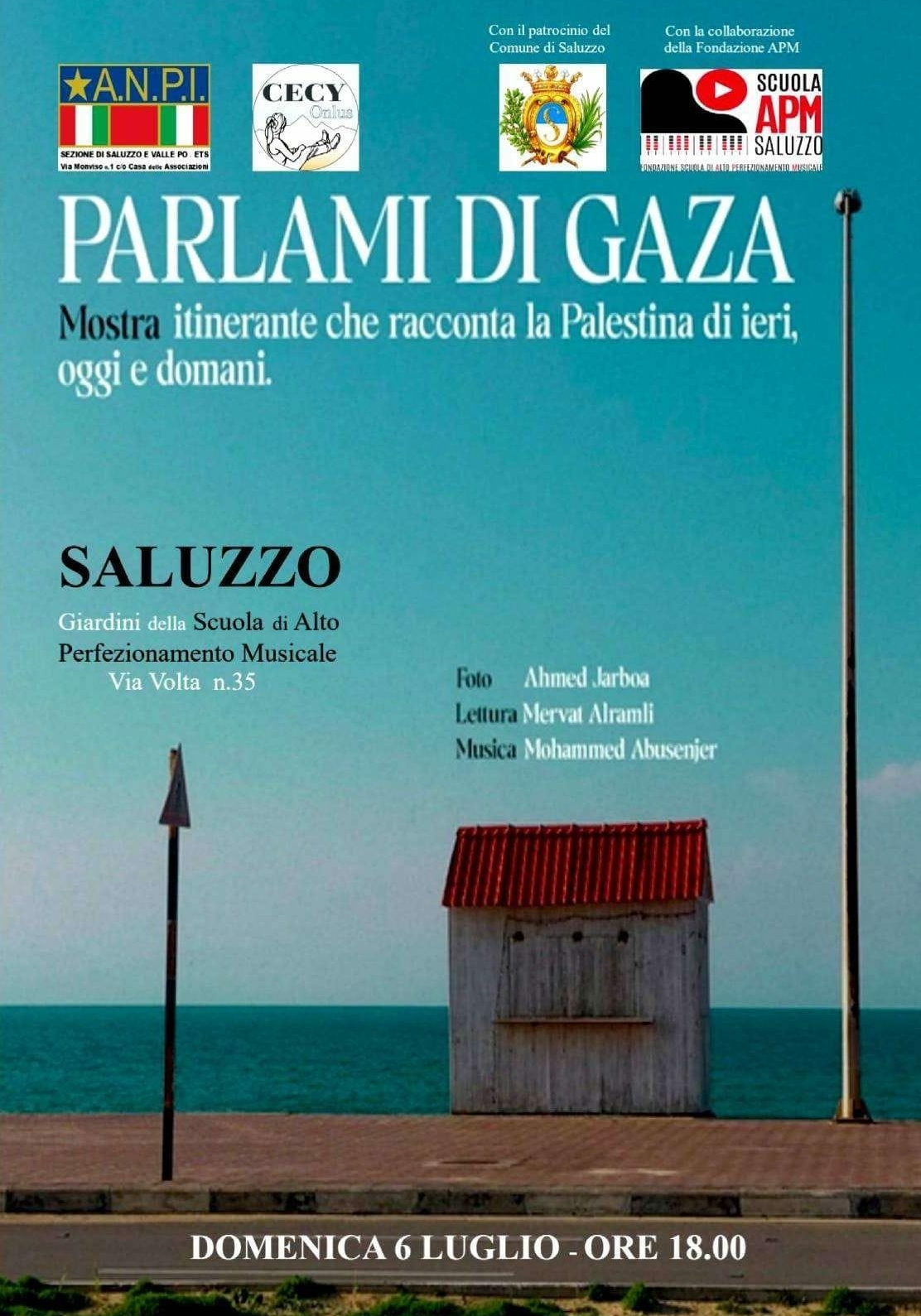 Domenica 6 luglio ore 18 giardini fondazione APM Saluzzo via volta n. 35 PARLAMI DI GAZA: artisti per uno sguardo nuovo.