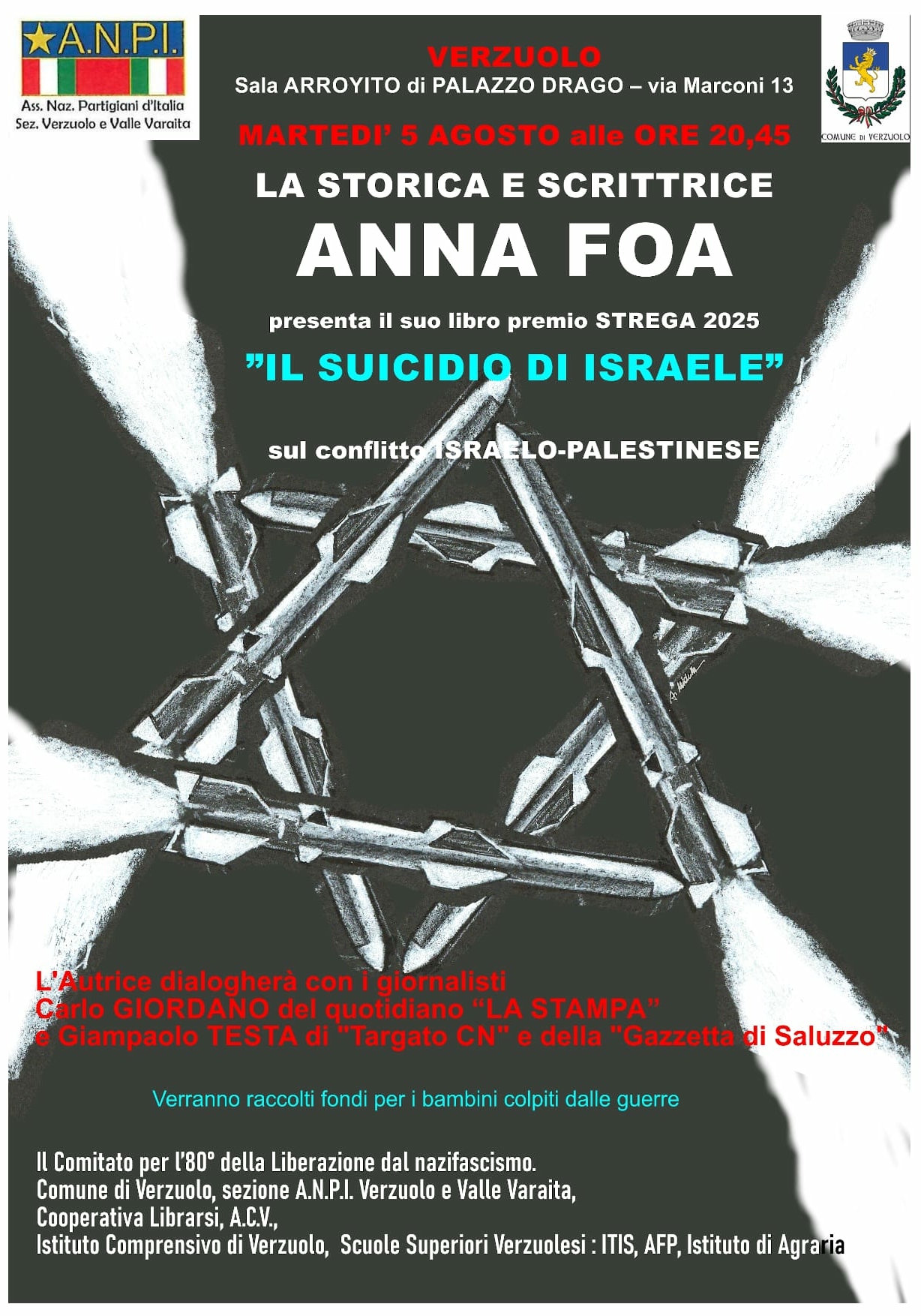 La storica e scrittrice Anna Foa presenta il suo libro premio STREGA 2025 , sul conflitto Israelo-Palestinese dialogando con i giornalisti de "La Stampa", "Targato CN" e "Gazzetta di Saluzzo":