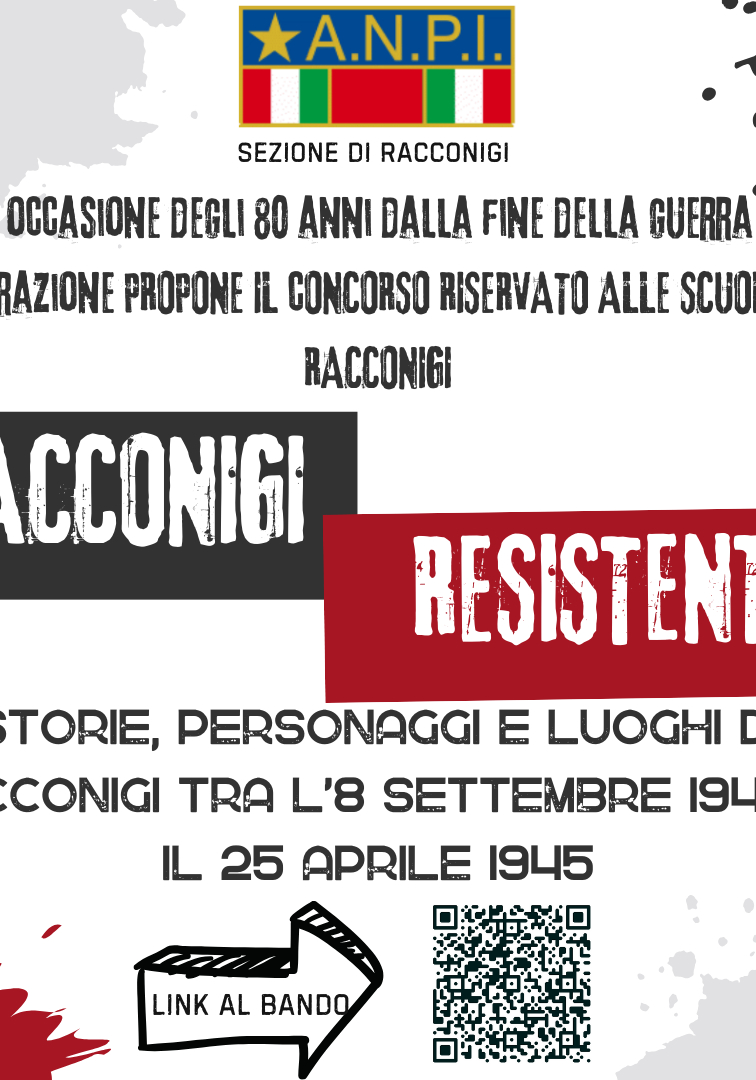 In occasione degli ottant’anni dalla fine della guerra di Liberazione, l’A.N.P.I. sezione di Racconigi propone un concorso riservato alle scuole di Racconigi